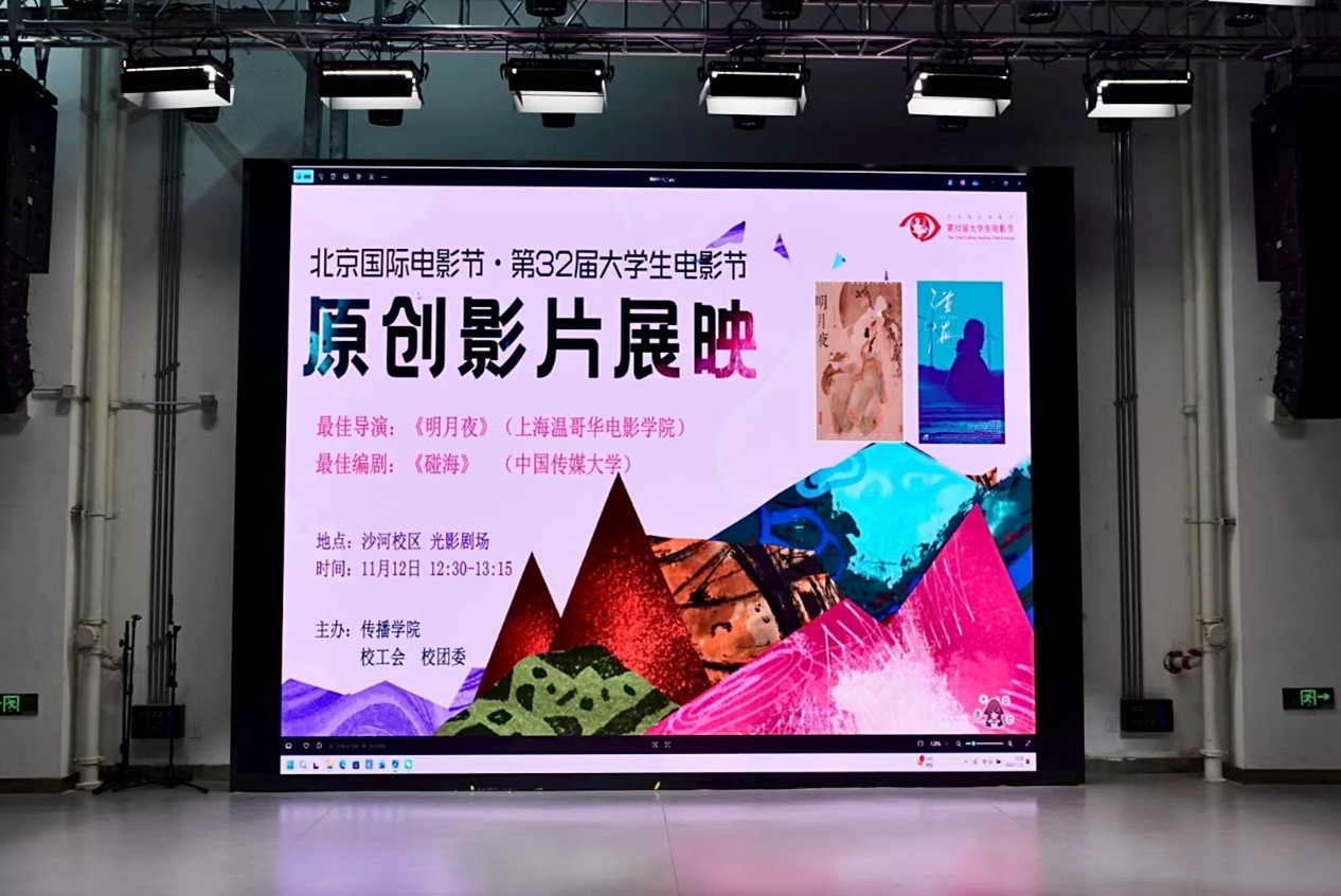 11月12日,由传播艺术与科学学院联合校工会、校团委共同主办的北京国际电影节・第32届大学生电影节原创影片第三场展映活动在光影剧场圆满举行。本次活动聚焦《明月夜》与《碰海》两部备受瞩目的获奖短片,为师生带来了一场思想与艺术交融的光影盛宴。