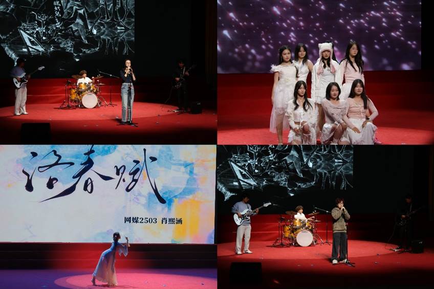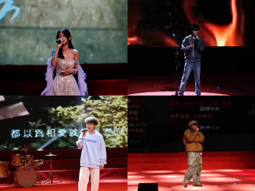 在独唱《阿楚姑娘》、《Rolling in the Deep》、《江南》,合唱《蝴蝶+月亮代表谁的心》《一笑倾城》,RAP《Talking Shift Freestyle》等歌曲中,同学们以清澈深情的嗓音、轻快活泼的旋律、情感的细腻表达,唱响了属于青春年华的纯粹美好,为现场注入了无限的活力与欢愉。